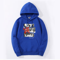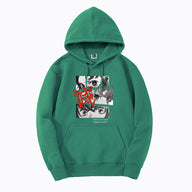 This hoodie captures a tense moment from Demon Slayer with intense facial expressions from Tanjiro, Zenitsu and Inosuke.