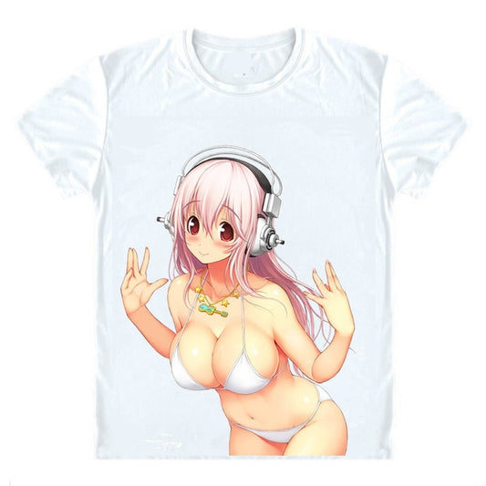 Super Sonico White Bikini Digital Printed T-Shirt
